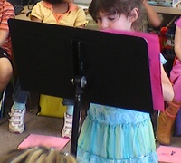 She started to read and – though, her grandparents were visibly surprised, “They’re in kindergarten, right?” and kept giggling at barely being able to see Mini-Me’s face over the podium – I was amazed at how strong (and loud) her voice was.