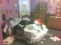 Once when my sister was a teen our burglar alarm went off and the police came. She let them in and they wanted to look around the house to make sure everything was okay. After a moment they asked her to come upstairs because they thought one of the rooms might have been ransacked. You guessed it: it was her bedroom. She sheepishly explained that her room always looked like that.