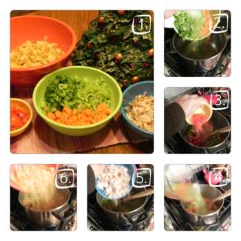 4. Add chicken stock and water, stir. Cover and simmer on low until stock begins to boil (about 10 minutes).